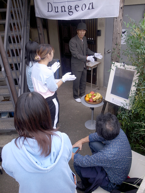 古川さんは自分に「サラリーマンから地下室の番人に身を落としたうらぶれた男」という役柄を設定し、いかにもそれらしい格好で毎日入口に立ち、来訪者に儀式のように鑑賞の作法を伝授するのです。