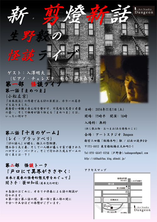 詩人・俳人・文芸評論家の生野毅さんによる怪談ライブです。