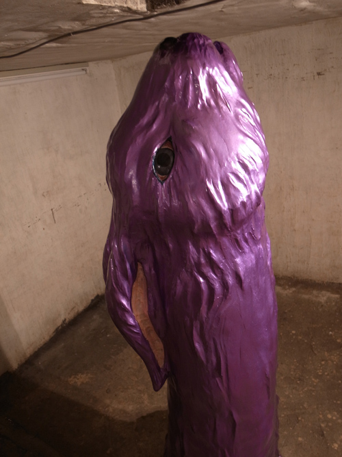 今回の展示の中でとりわけ目立つこの作品は、正面から見ると巨大な男根ですが、裏にまわると兎、というダブルイメージになっています。作家自ら書いたキャプションによれば、ファルス中心主義を脱構築している、といったところでしょうか。