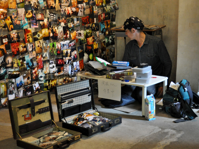 であると同時に、風のように自転車を駆って、あまたのアートスペースに神出鬼没し、愛用のコンタックスG1で写真を撮りまくる記録魔でもあります。