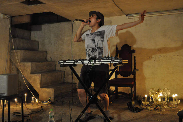 役者たちが地下室内をあちこち歩きまわりながら、あらかじめ台本に書かれた台詞を呟き続けます。それは演劇に関する警句めいたものだったり、花火や仕事の話といった卑近な話題だったりします。そして、それぞれが単にモノローグをしているのではなく、ひとりの呟きが他の俳優へ連鎖していったり、アドリブとおぼしき台詞が混じったり、ときには対話らしきものが発生したりして、そのやりとりの妙におもしろさがありました。