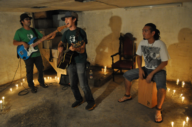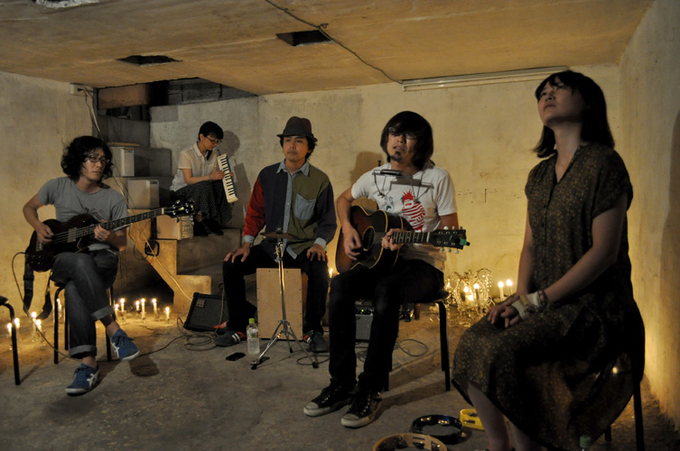 まるで真夏の太陽さながらの輝きをそのまま地下室に持ち込んだような、どこまでも明るく、楽しく、前向きな世界観は当スタジオ初でなかろうか。実は筆者には太陽の輝きを地下に持ち込みたいという願望があったので、うれしい限りである。「音を楽しみたい、観客と一緒に作る音楽を楽しみたい」という彼らの音楽はハートフルできらきらしているかと思えば、ソロ紹介のくだりでは「ギターって打楽器だったっけ?」と思わせるほど激しく、楽しく、真夏の太陽そのものパッション溢れるパフォーマンスとなった。