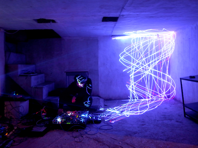 ◾️miura motomuモジュラーシンセと同期したレーザー照明が格好いい、洗練されたミニマリズム。