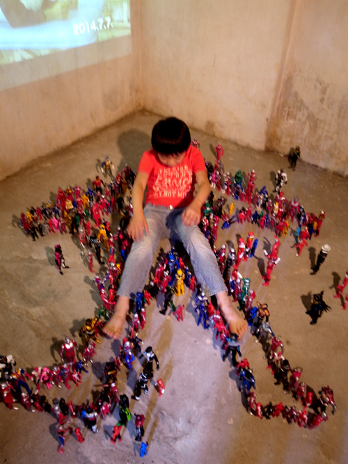 大量のソフビ人形によるインスタレーション「入院/儀式」