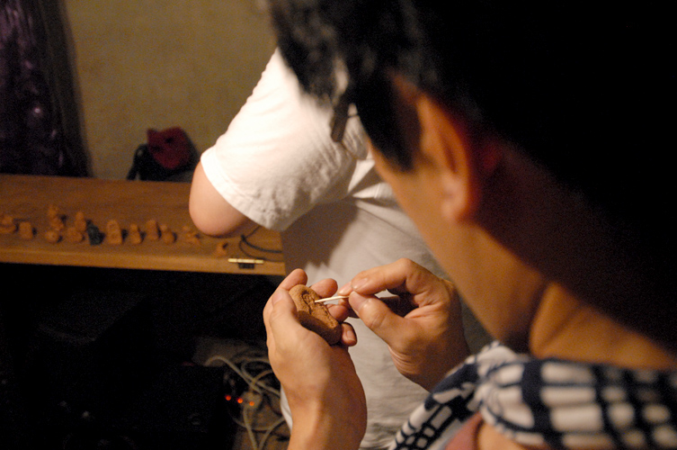 手に持てるぐらいの大きさの白木を彫って独特の「神像」を制作しており、現代の庚申塔を委嘱するにあたって、やはりすぐに頭に浮かんだアーティストでした。