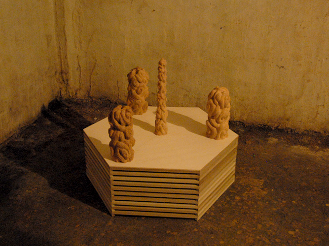 自由に作ってください、とお願いしたら、みなさんほんとに無手勝流に自由に作ってくれました。どの作品も一見とても庚申塔とは思えない形ながら、庚申塔のエッセンスをしっかりと汲み取っているのはさすがです。