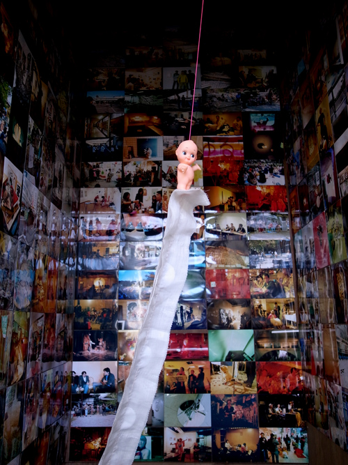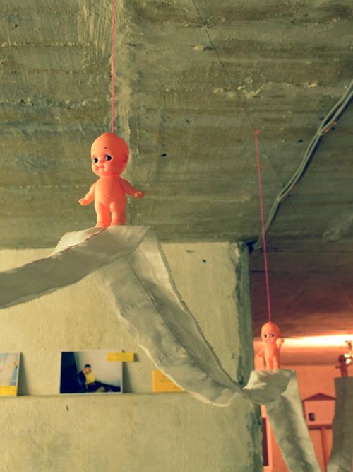 タカユキオバナ×栃木美保「この道はいつか来た道」入口で出迎えたキューピー人形が地下室の奥まで来場者を導いてくれます。