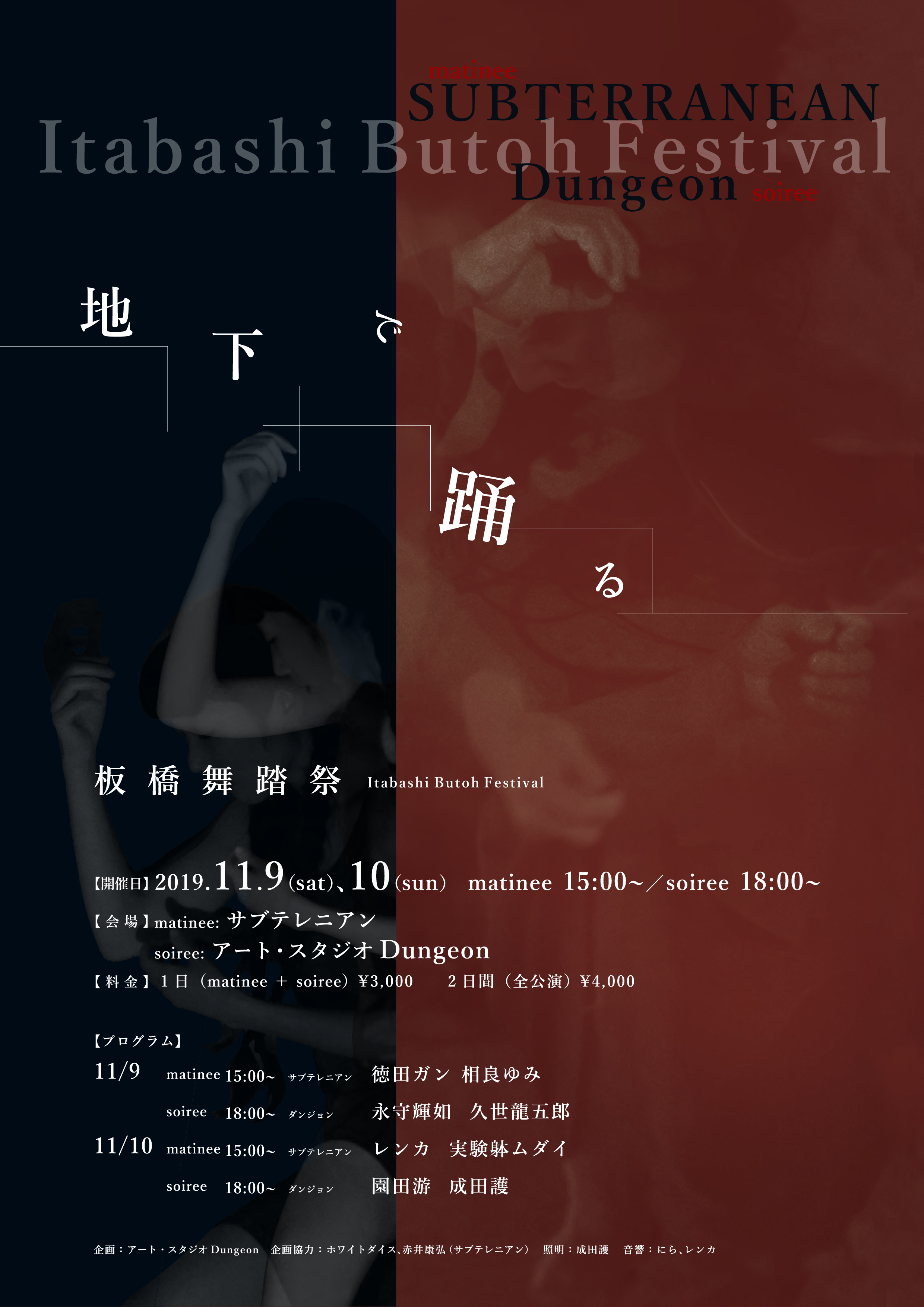 今回はサブテレニアンの協力を得て、2つの場所で踊りを見比べるという試みをやってみましたが、どんな空間であれ自在に踊ることのできるのが舞踏家の真骨頂だと得心しました。