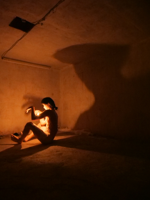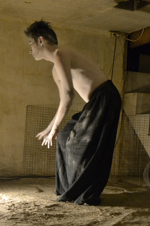 ■永守輝如ソワレは地下室で、大野一雄舞踏研究所出身の若手2人が対照的な踊りを披露。